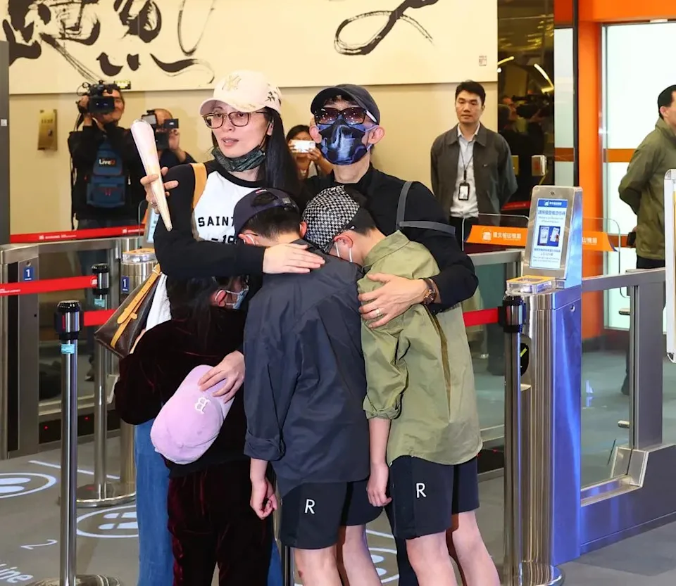 劉姓陸籍配偶「亞亞」涉武統言論遭處分限期自行離境,25日晚間將從松山機場搭機離境,頑固態度網紅「八炯」(前左三)及「閩南狼」陳柏源(前右)等人傍晚到松山機場舉牌抗議。