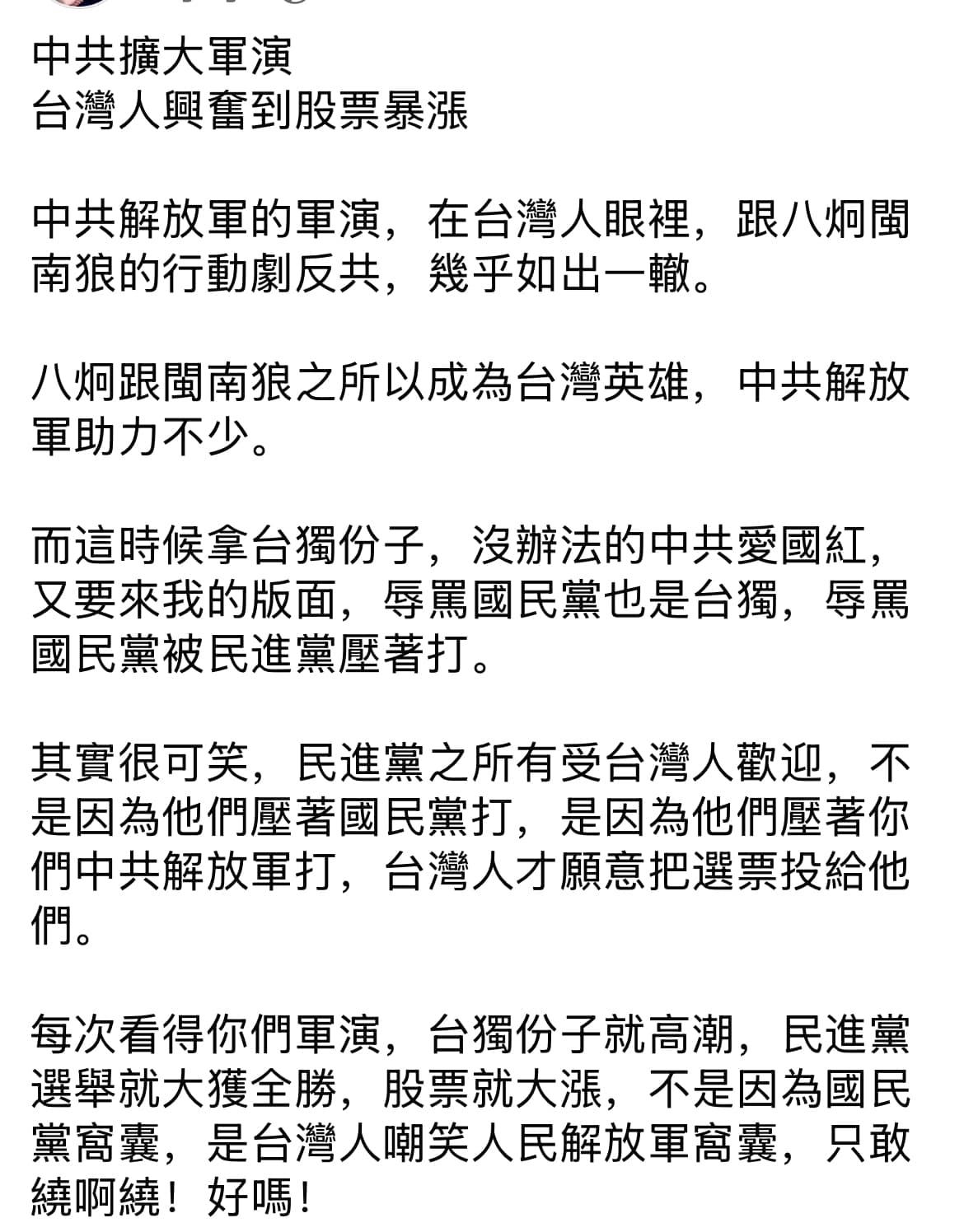臺獨說不怕軍演