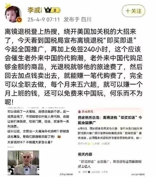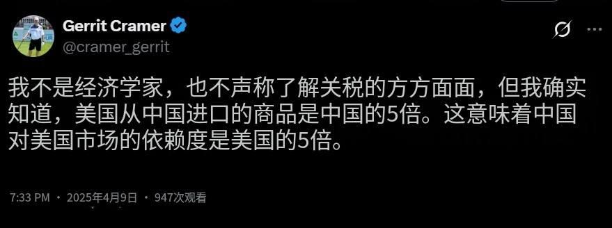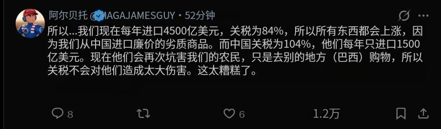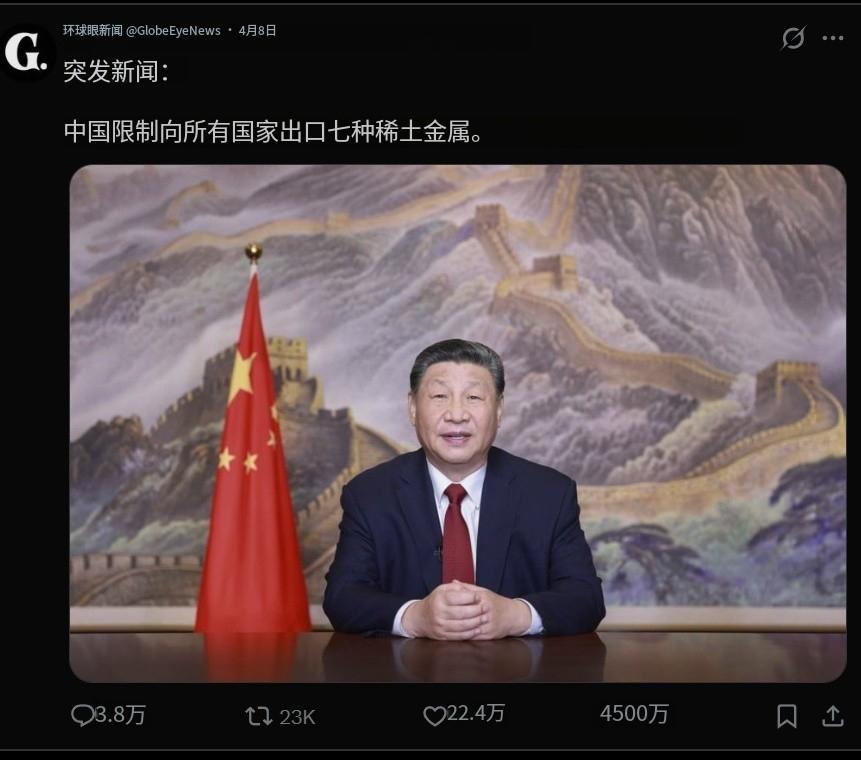 大陸反制美國84%關稅 1 大陸最新宣佈,自4月10日12時01分起,原產于美國的所有進口商品的加征關税税率,由34%提高至84%。 這不是中國的面子之爭。 更不是意氣用事。 而是對等尊嚴的求生之路。 中國只能戰。 戰,才有活路。 2 大陸說了奉陪到底。 正面剛,是因為大陸知道,這是唯一的出路。 因為川普玩的,不是什麼關稅帝君戰。 不是帝國主義戰。 川普是要中國死。 3 不是不想談。 而是,跟川普談,不會有好果子吃。 只會更被拿捏。 軟土深掘。 4 川普只想單邊贏,沒有雙贏這回事。 雙贏,表示給你太多好處,對你剝削不到底。 表示他佔太少好處。 5 他只想獨贏。 你的死活,他不在乎,不會管。 但他要,中國衰弱崩解。 他要把中國從地球剝離。 6 大陸看得越透徹,就越知道如何應對。 而全世界裡許多人,卻是第一次,看到美式帝國主義。 如此赤裸裸。 他們以前,看著美國花式欺凌中國,做壁上觀,興災樂禍。 現在,算看到美國沒穿褲子。 7 不過,川普根本不在乎有沒有穿褲子。 也不介意被你我看見。 他只要威脅恐嚇,擴大優勢,確保自己吃獨食。 要劫掠全世界。 8 他要佔關稅便宜。 要貿易額。 要投資。 要強買強賣。 要降息。 9 他逼台積電去美國投資。痛苦? 台積電自己處理。 美國逼Tiktok 賣給美國公司。 要逼各國買100年無息美債? 要設立美國政府創投,控制全世界。 率土之濱,莫非皇土。 人類,皆其奴隸。 10 全球股市狂跌? 誰知道他有沒有放手做空? 越跌,他越賺。 幾十輩子花不完。 這是川式恐怖主義。 11 眾人驚恐,因為,跟恐怖份子,不知怎麼談。 但川普對中國,川普的目的不是勒索,而是毀滅。 所以,談判中他不會給中國生機。 只會更凶殘。 12 中國必須盤點最壞的狀況。 盤點清楚,知己知比。 最好的戰略,就是, 挺下去。 比氣長。