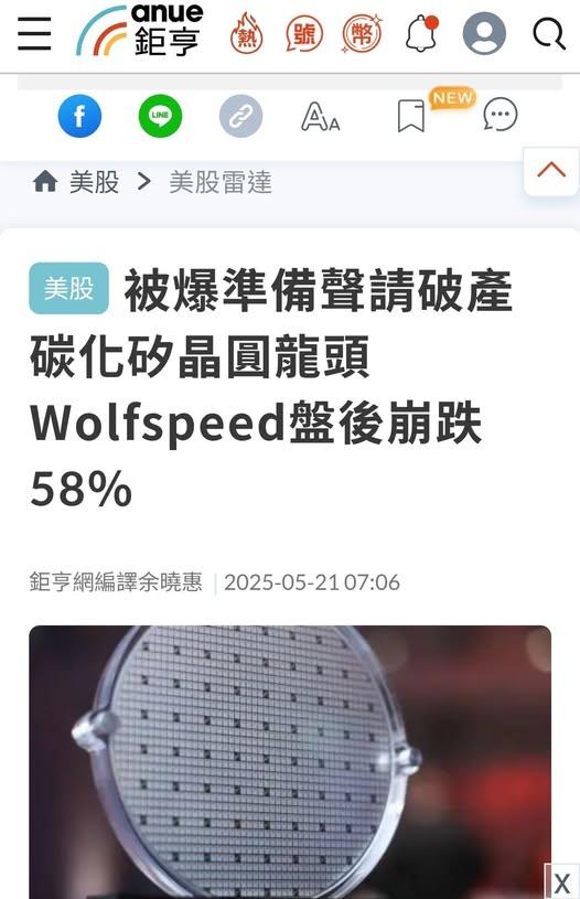 製造業真的有能力在關稅保護下生存於美國嗎?萬一一切事與願違,世界將會翻天覆地出現大變化,你準備好了嗎?碳化矽半導體晶圓龍頭Wolfspeed可能倒閉 美國的製造業回歸 會不會是竹籃打水 在川普高關稅逼迫製造業回歸前夕,美國的第三代半導體晶圓廠龍頭,竟然傳出因為電動車銷售不如預期,歷史股價從最高時候142.53美元,昨天跌到剩下3.13美元。 台灣在台積電遠赴美國之後,其他台灣的上下游產業鏈,勢必一起前往美國。 但是連美國自己的本土產業,都無法生存的美國產業環境,遠赴美國的台灣產業,難道不會更無法適應水土嗎? 製造業真的有能力在關稅保護下生存於美國嗎?萬一一切事與願違,世界將會翻天覆地出現大變化,你準備好了嗎?0 Comments·0 Shares·3K Views·0 Reviews - 今天520