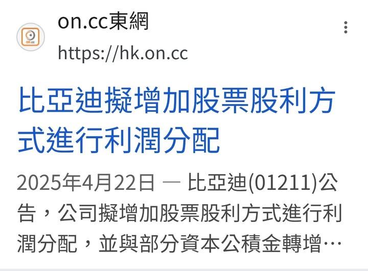 是都不看上市公司財報嗎?台灣的財經專家 財經評論員 都不看財報嗎? 比亞迪今年4月22日才公告 2024年度盈餘配股配息計畫 怎麼台灣的財經專家 還有財經政論評論員 各個都信口開河 說比亞迪是下一個恆大 當時恆大還有碧桂園 他們是積欠供應商貨款 付不出貸款利息 比亞迪不但沒有積欠貨款 更沒有積欠銀行利息 而且還能對股東配股配息 你們這些財經評論員 是都不看上市公司財報嗎?0 Comments·0 Shares·1K Views·0 Reviews - 比亞迪會是下一個恆大嗎?