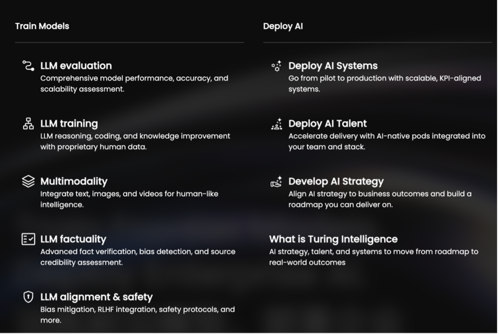 当OpenAI等顶级AI基础模型厂商对数据的需求正在疯涨时,Turing捕捉到这一机遇,果断转型为AGI基础设施提供商,将以往积攒的庞大资源(软件工程代码数据及模型评估能力)包装成标准化服务。