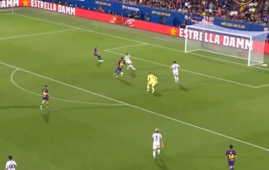 After Yamal won the ball back inside the visitors’ half, he slipped his team-mate in on goal.
