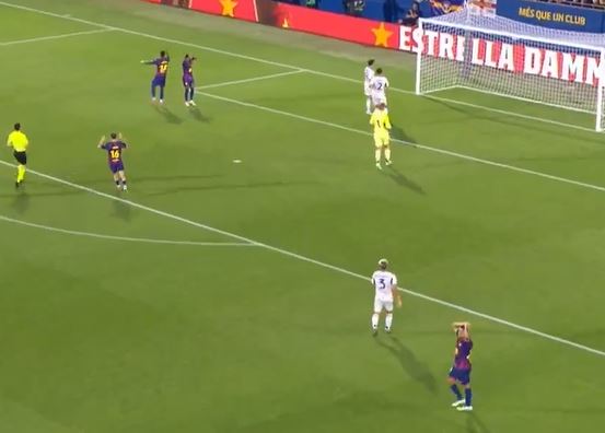 His shocking miss left Raphinha, Lopez and Eric Garcia with their heads in their hands.
