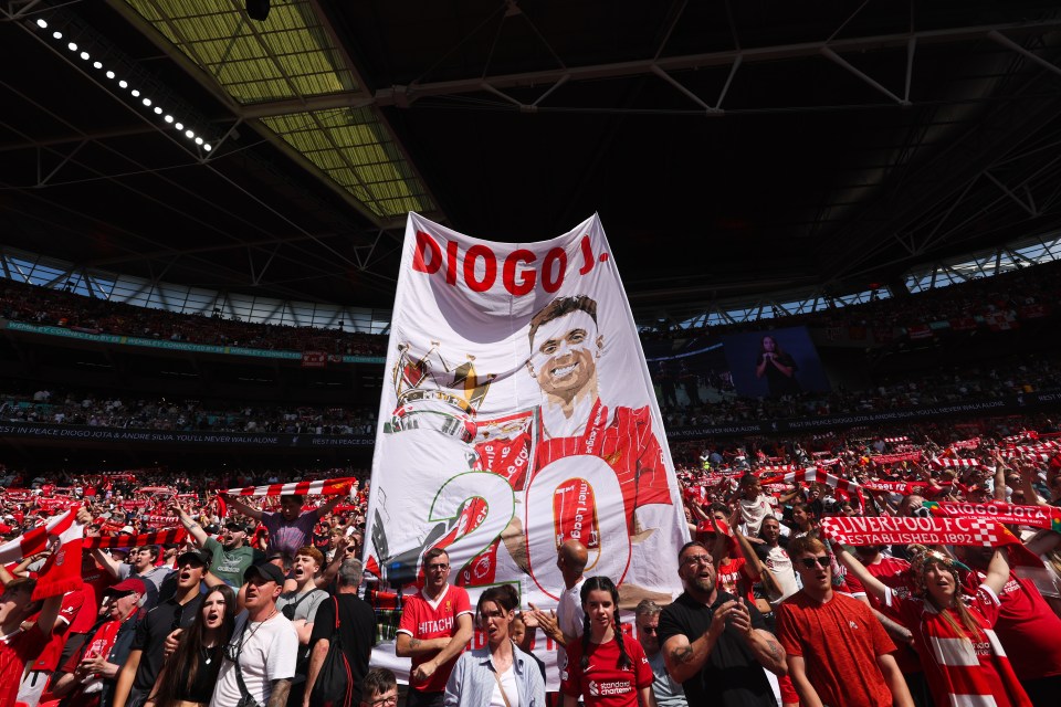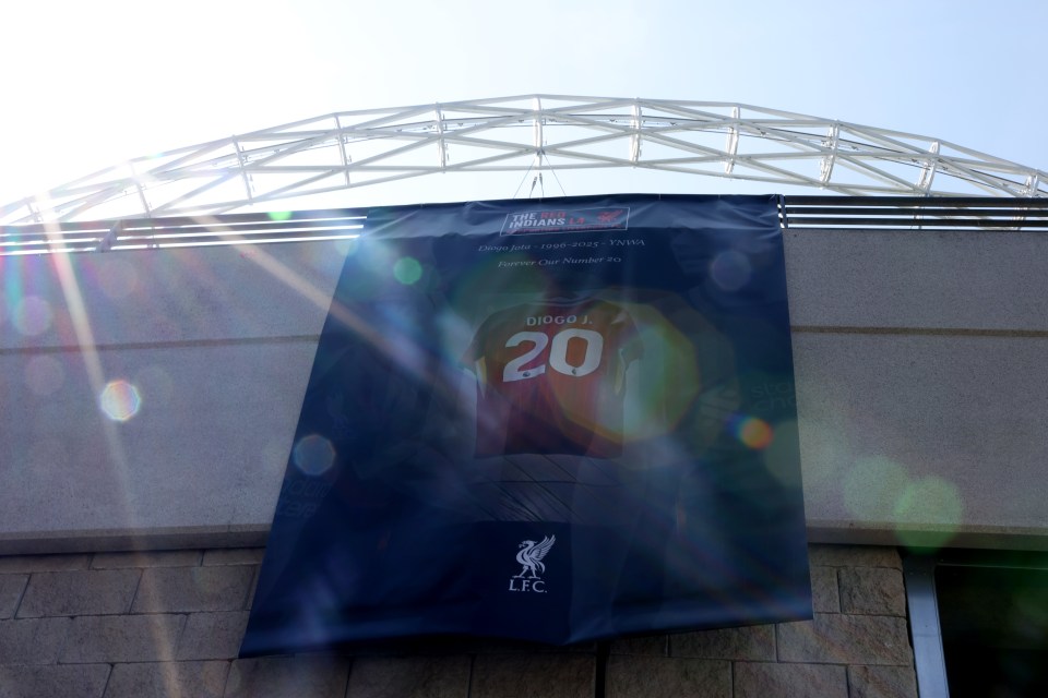 A banner was also unfurled outside Wembley Stadium displaying Jota’s Liverpool shirt.