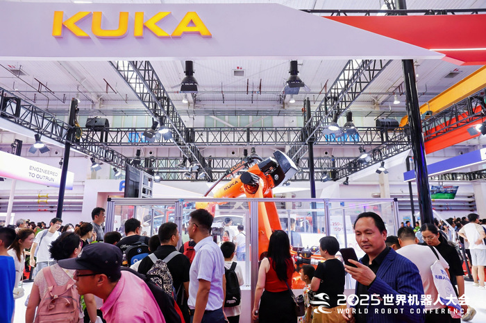 本届展会上,ABB、库卡等工业机器人企业展台前的人流,与人形机器人公司的展台形成鲜明对比。
