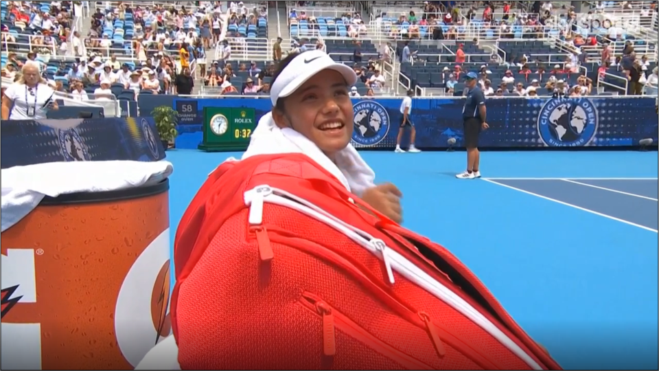 Raducanu eventually overcame the shock to see out the second set against the world No.1 who knocked her out of Wimbledon a month earlier.