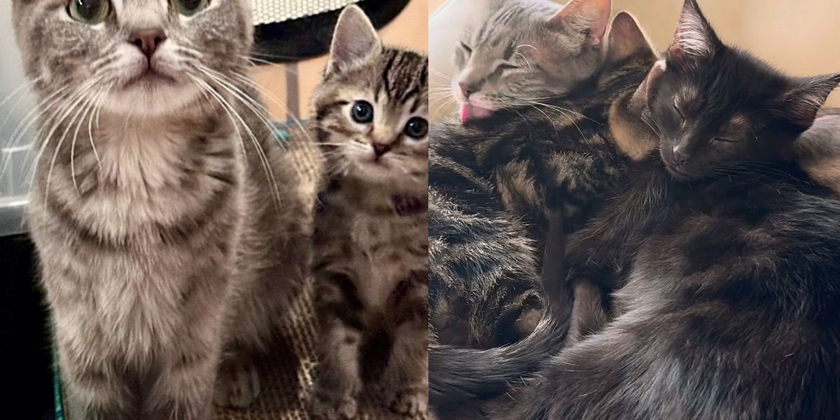 Soon, both kittens were snuggling against their mom as she groomed them one by one, just like old times.