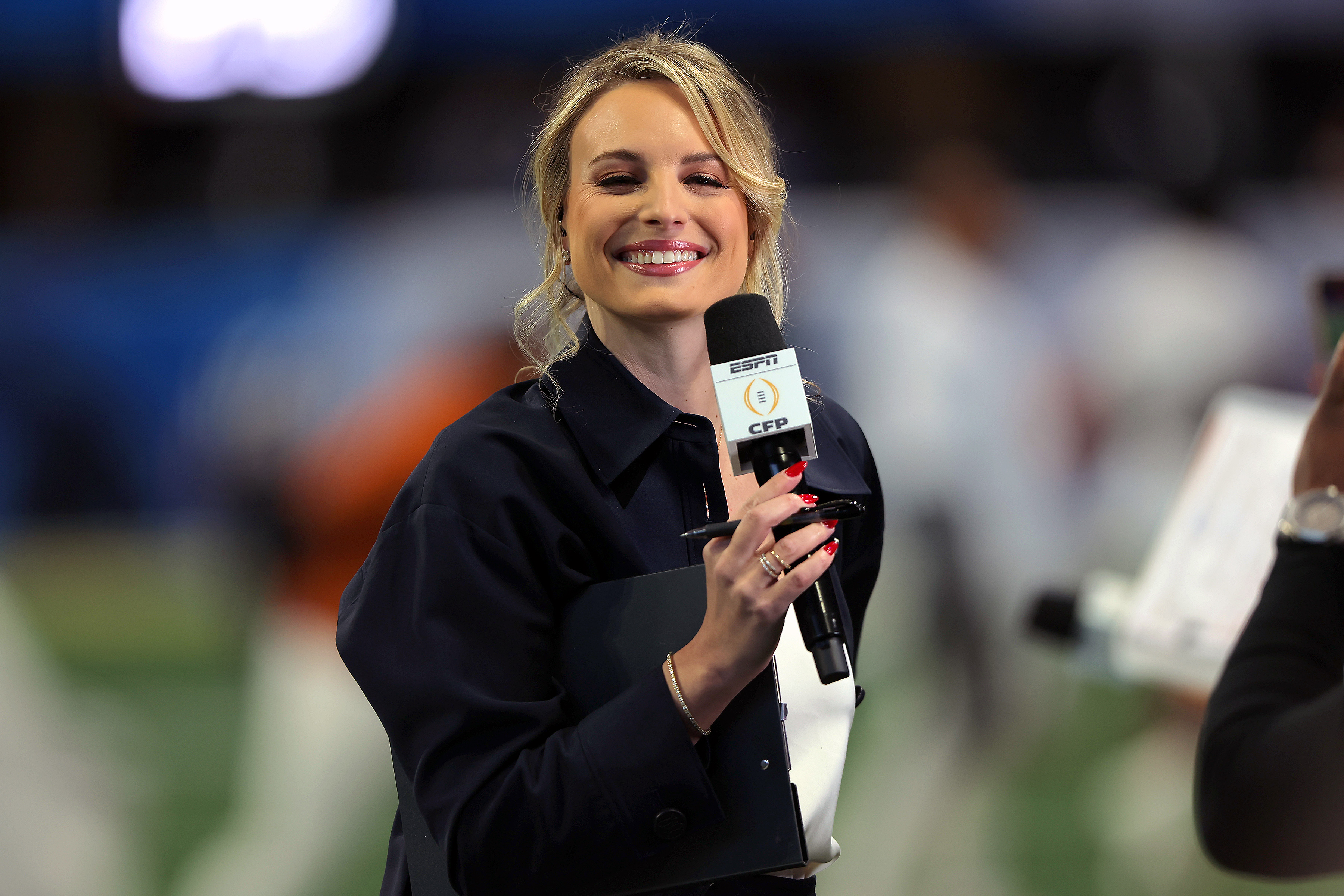 “Katie George went from local news anchor to ESPN sideline reporter. Love to see it,” one fan wrote on X.