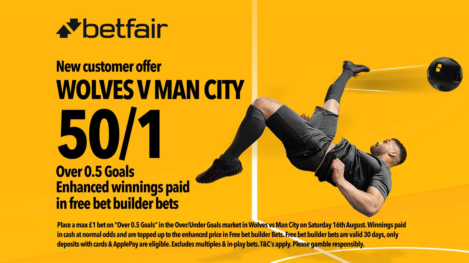 Betfair betting offer – Get 50/1 on a goal to be scored in Wolves vs Man City – CLAIM HERE*
