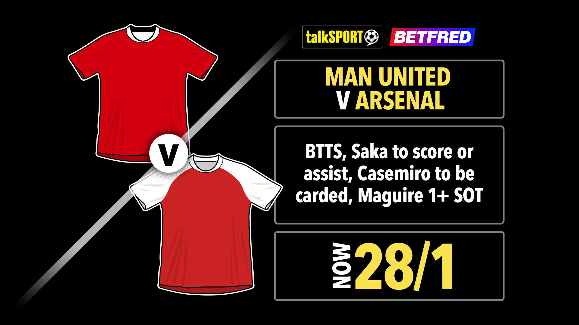 talkSPORT Bet Builder Boost: BTTS, Saka to score or assist, Casemiro to be carded, Maguire 1+ SOT – NOW 28/1!