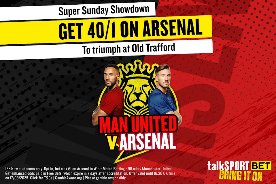 And talkSPORT BET are offering new customers enhanced odds of 40/1 for Arsenal to win away in their first game of the season vs Man United!