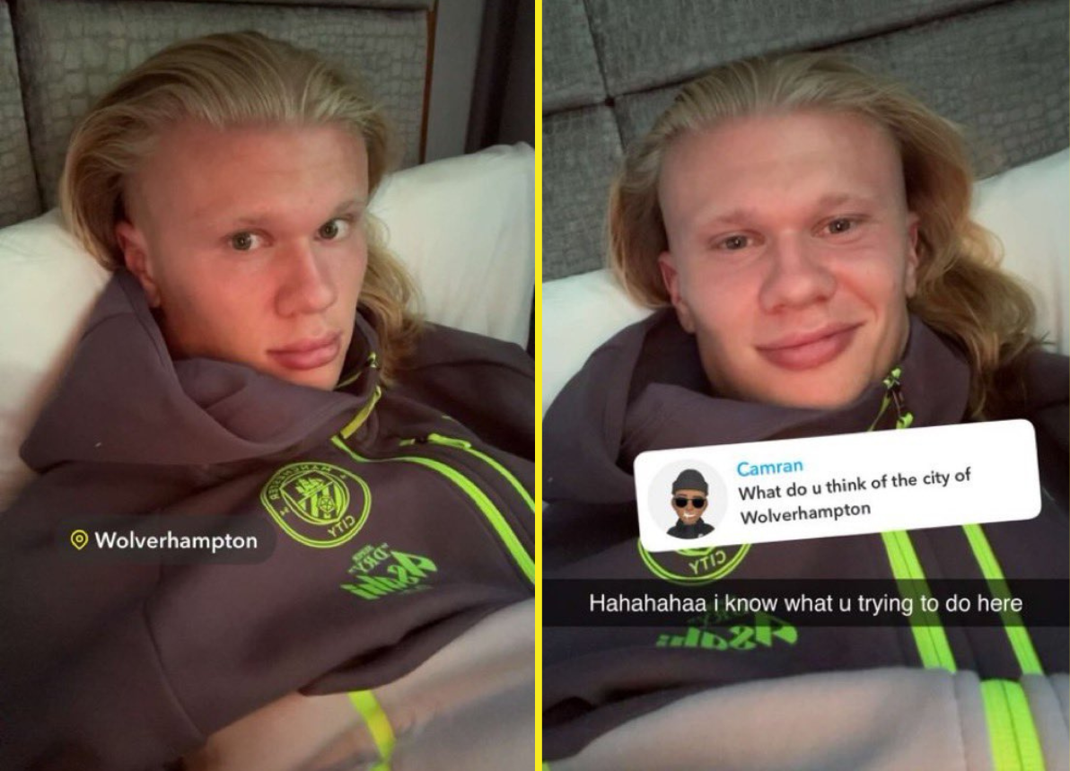 Erling Haaland hilariously showed his English football meme knowledge, snubbing a fan who tried to get him in trouble on Snapchat.