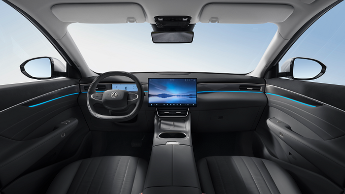 外观采用新能源市场主流设计语言,封闭式前脸配分体大灯与贯穿式灯带,侧面半隐藏门把手与镀铬饰条组合,尾部贯穿式尾灯组与隐藏排气布局构成完整视觉体系。提供六种常规配色方案,但整体造型与部分同级别竞品存在一定同质化特征。座舱推出三款内饰主题,环抱式设计搭载8.88英寸仪表与15.6英寸中控屏,高通骁龙8155芯片支撑"天元智舱"系统,集成双AI大模型实现智能交互。