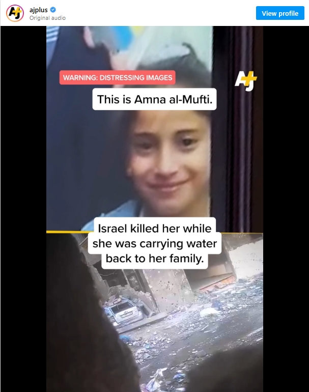 半岛电视台获得的视频显示了12岁阿姆娜·穆夫蒂的最后时刻,她为家人取水时被以色列军队杀害,以及她父亲的悲痛。
