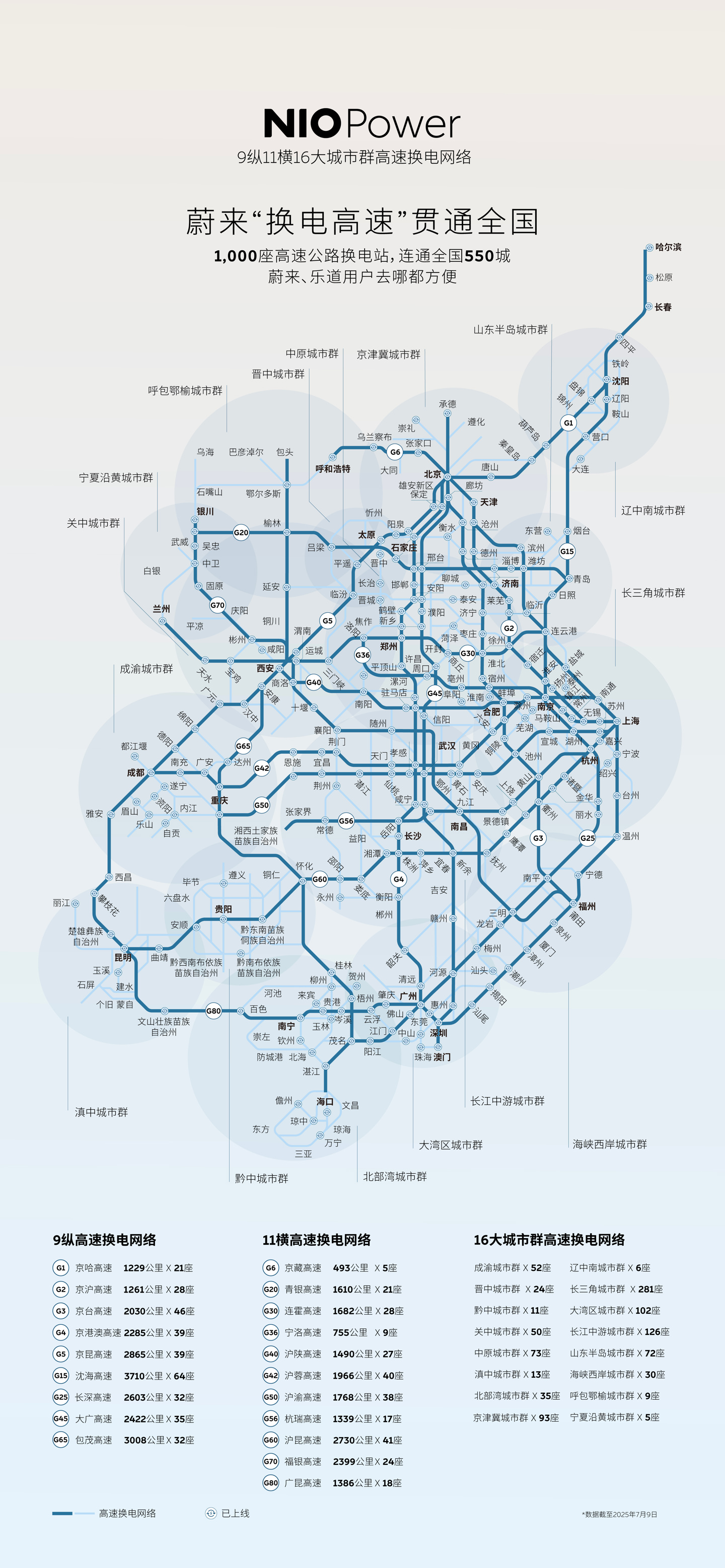 据介绍,蔚来能源完成全国主要城市间高速公路换电网络建设,连通全国 550 城,蔚来和乐道用户高速公路补能焦虑宣告终结。