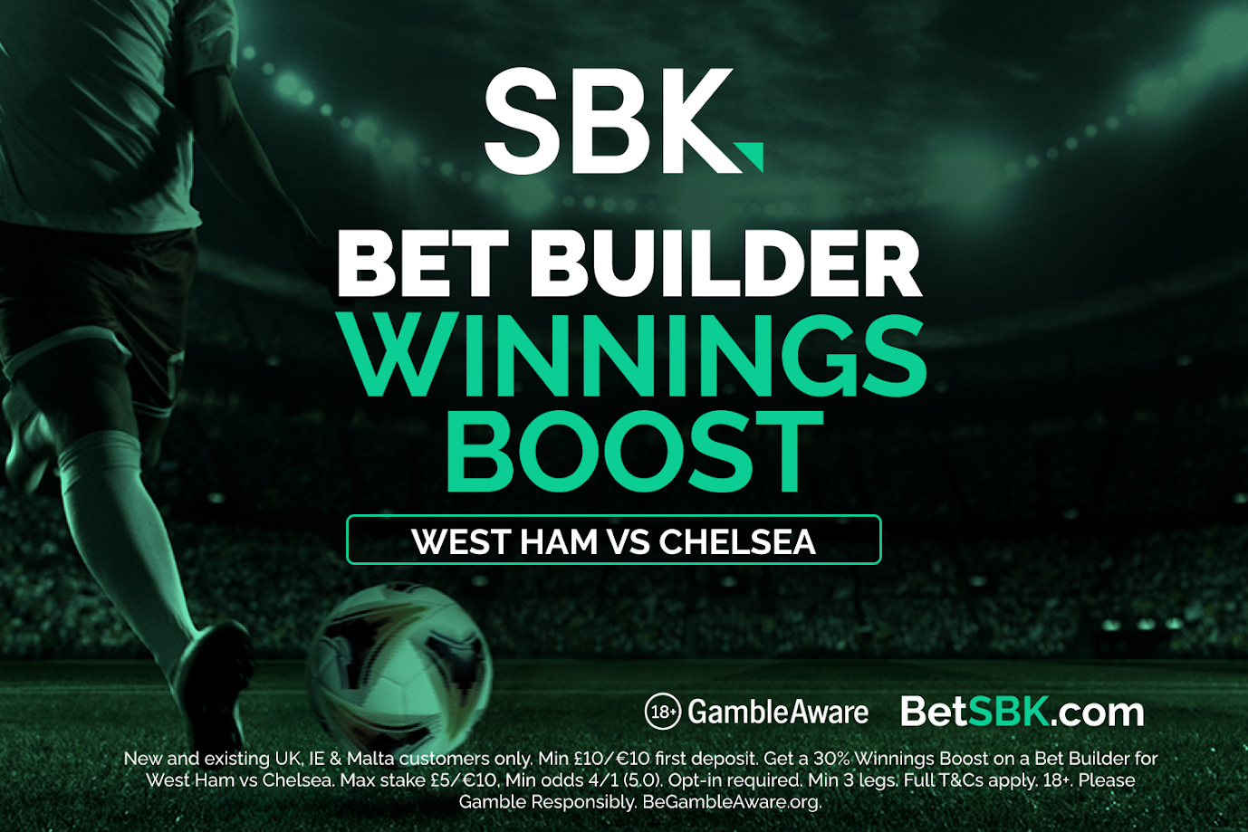 SBK – Get a 30% boost on Bet Builders on the West Ham v Chelsea – CLAIM HERE*