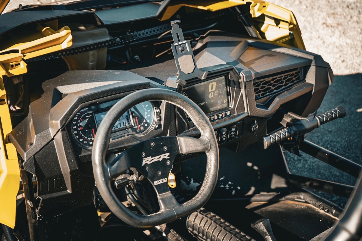 The chassis has been stretched with components from a four-seat model, while a rear wing and roll cage add stability and safety. Inside, the seats are lifted straight from a 997-generation Porsche 911 GT3 RS, paired with a Sparco steering wheel and a 7-inch infotainment display. The dashboard has been lowered, giving the cockpit a more open feel compared to a standard RZR. With just 400 miles on the odometer and a clean Arizona title, it remains a lightly used but thoroughly distinctive machine.