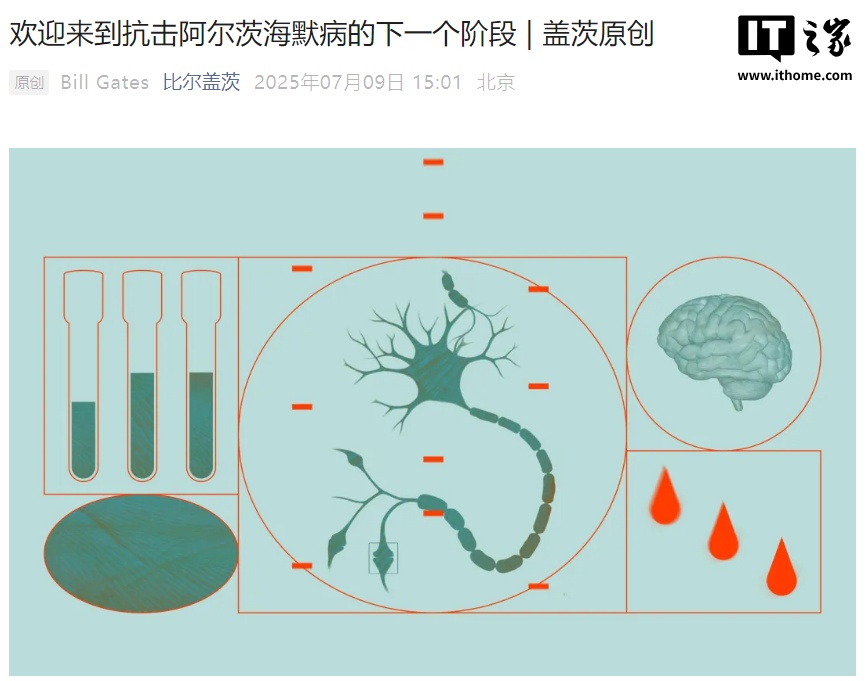 IT之家 7 月 9 日消息,比尔・盖茨公众号今日发文,谈到了抗击阿尔茨海默病(俗称“老年痴呆”)的最新进展。