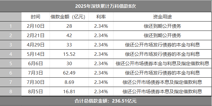 自今年2月份起,深铁集团分别在2月10日、2月21日、4月29日、5月14日、6月6日,7月3日、7月30日和8月5日向万科提供了8次借款,且借款利率和抵质押率均优于市场惯例水平。