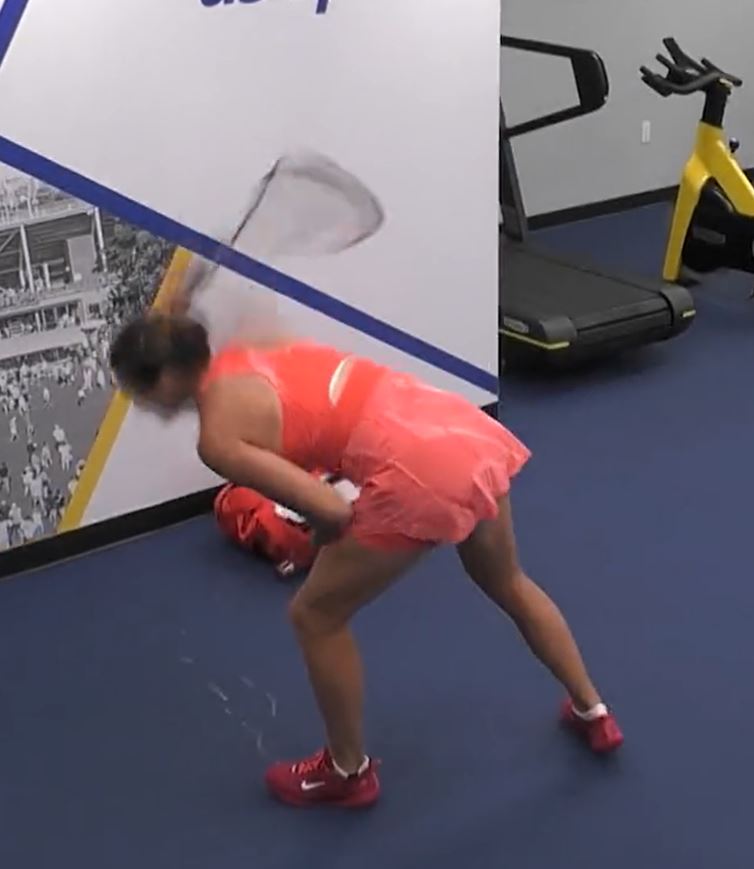Footage was broadcast at the time of her smashing a racket behind the scenes before calmly putting it in the bin.