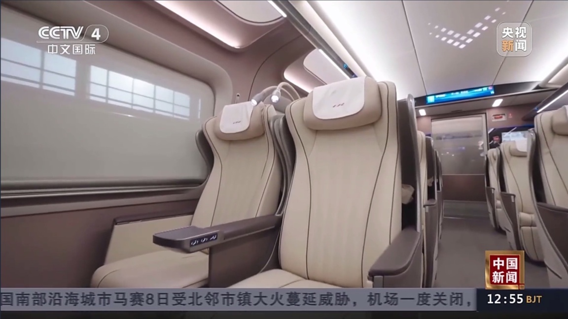 此外,CR450 座椅采用了“零重力”的理念,类似于航天员座椅的形状,跟人的身体更加贴合、更舒适。