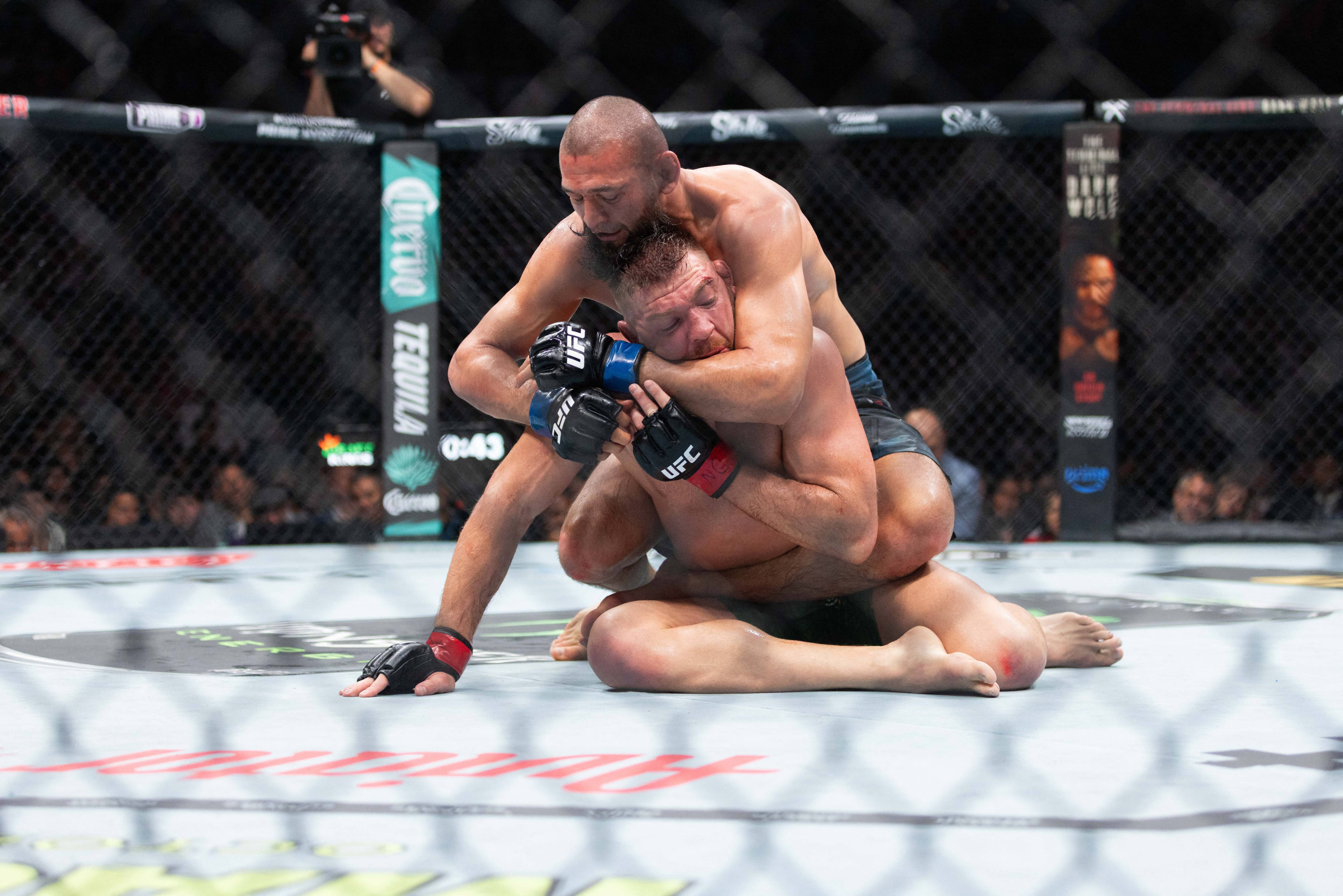 He was dragged to the canvas a few seconds into their bout and never managed to escape the devastating clinch of ‘Borz’ for the remainder of the fight.