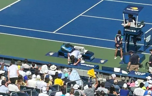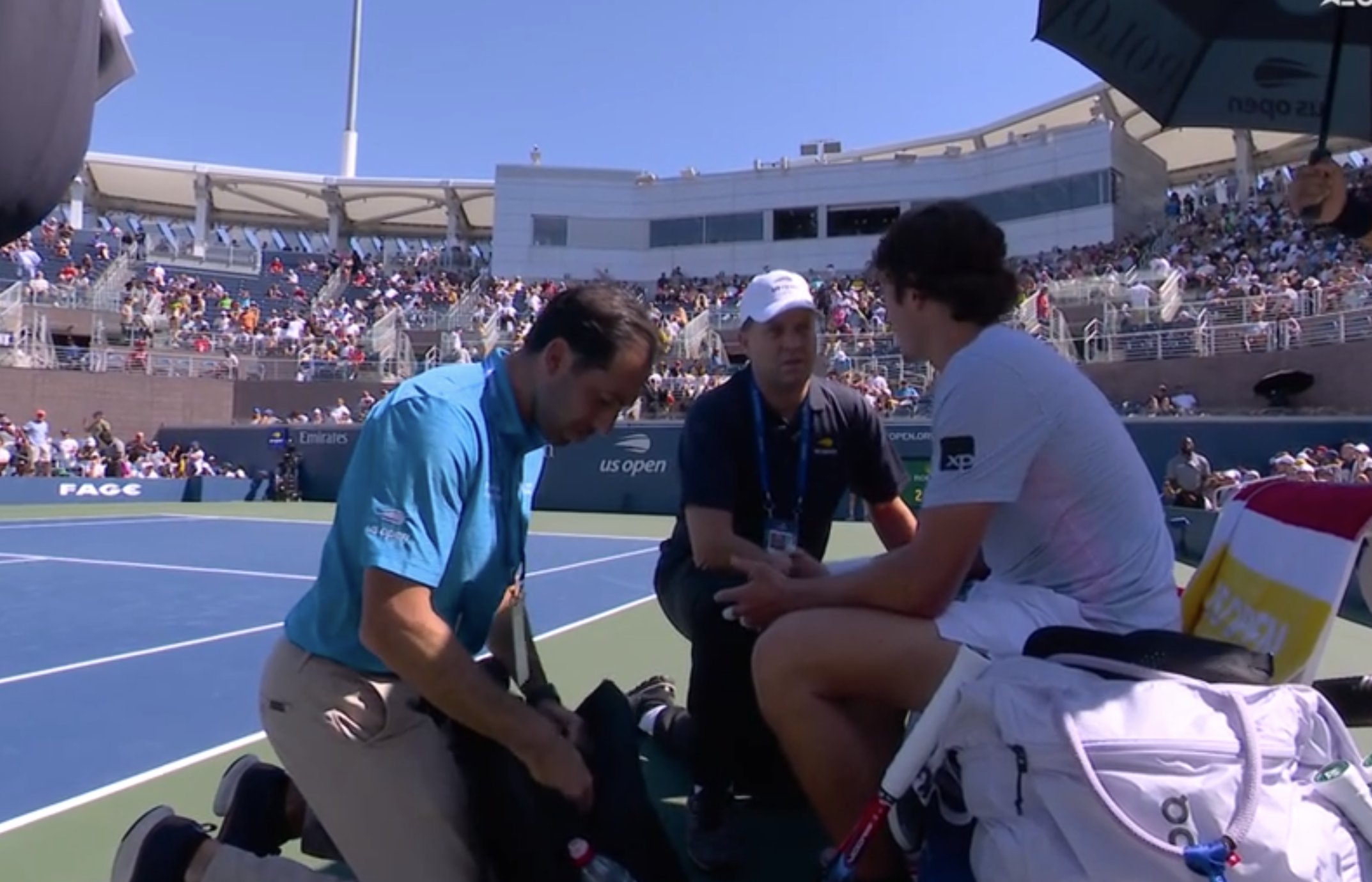 During the third set on the Grandstand court, Fonseca needed a medical timeout and trainers were called onto the court.