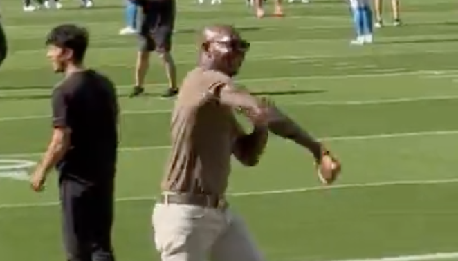 Rice was playfully running a route in warmups when he saw a ball go right off of his hands. He punched the air and yelled at himself for dropping the ball.
