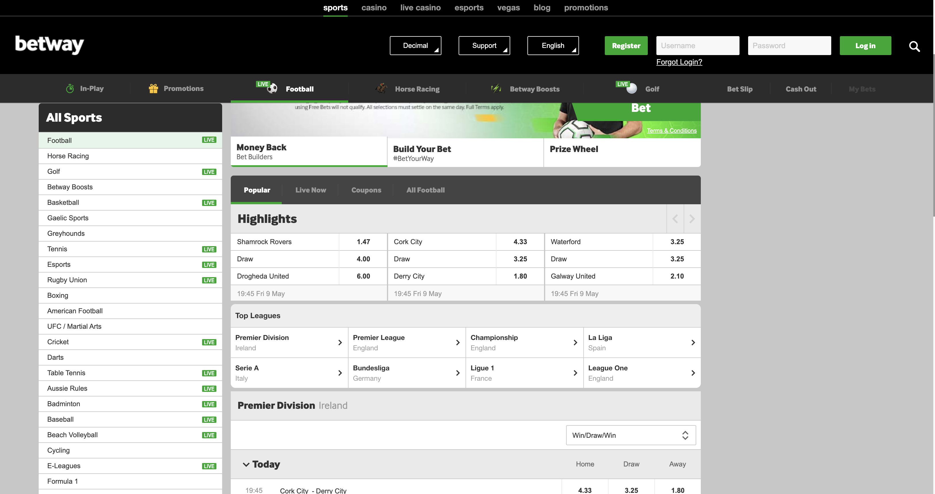Live betting is one area where Betway score highly over its competitors. There are more in-play options than you’ll find at many Irish sportsbooks, with excellent odds to back things up.