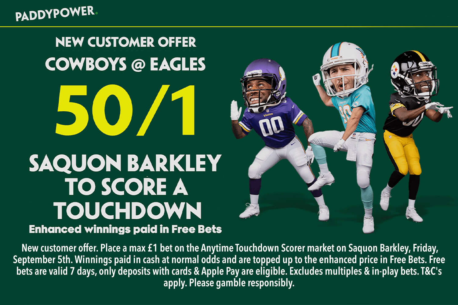 Paddy Power – Get 50/1 on Saquon Barkley to score a touchdown v Cowboys – CLAIM HERE*