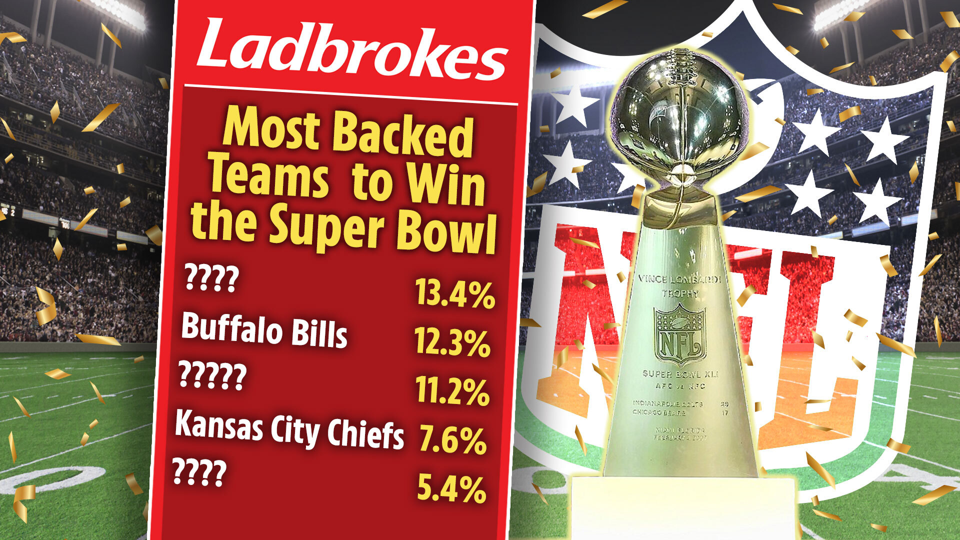 The Bills are currently joint-favourites to lift the Vince Lombardi Trophy for the very first time though, aided by the performances of their star quarter back Josh Allen, and have been backed by 12.3% of Ladbrokes bets.