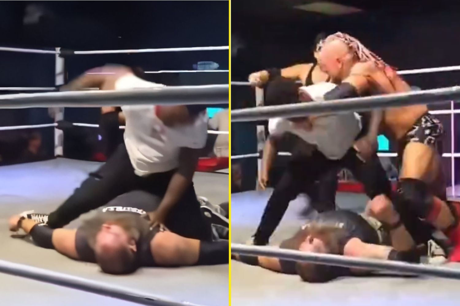 Raja, 25, went into the ring during a KnokX Pro Wrestling event in California last month and left Smith scarily unconscious after grounding him and landing several punches to the head.
