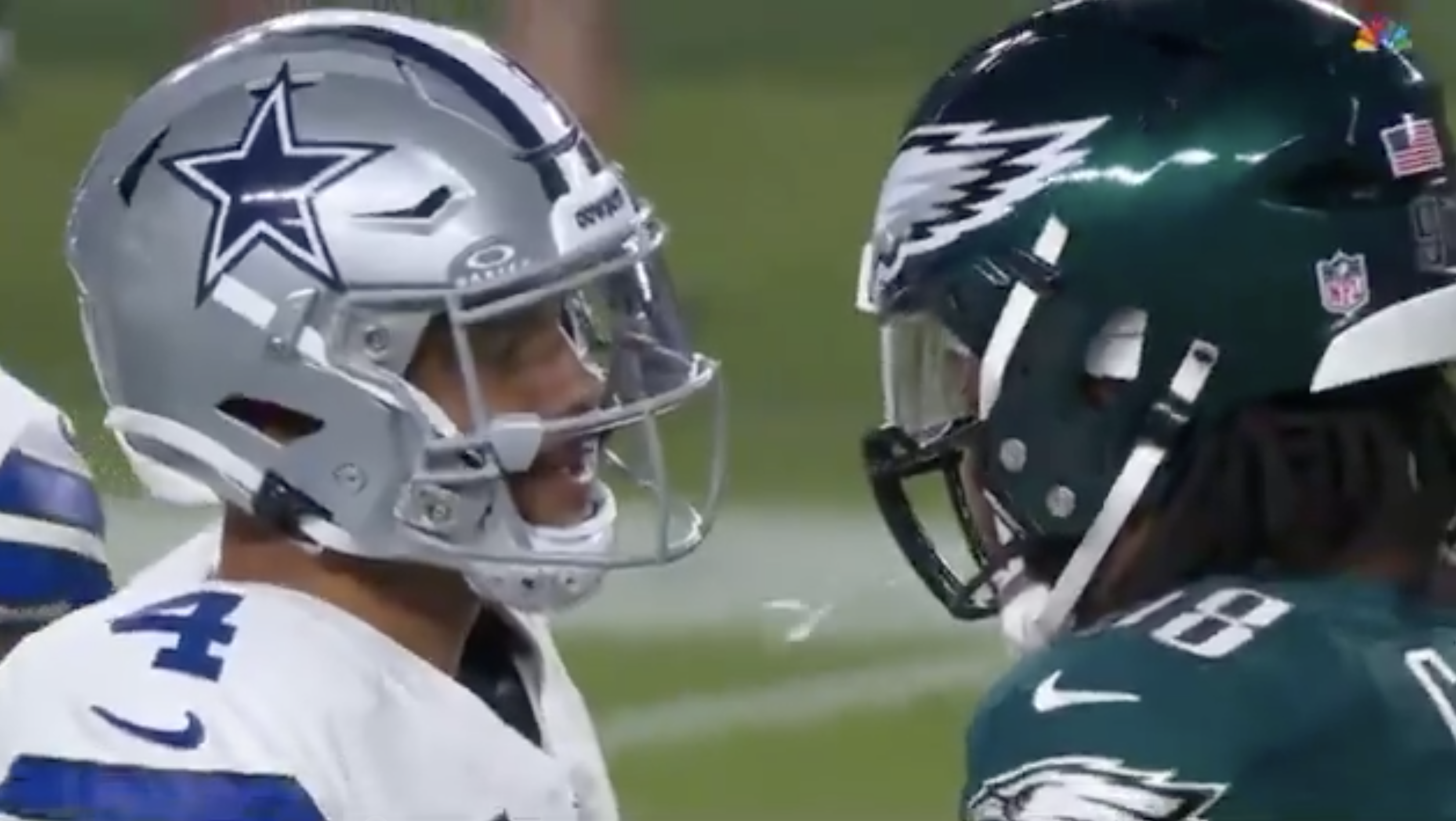 Footage later surfaced that showed Prescott spitting first, but not directly at Philadelphia’s third-year star, who was immediately flagged and ejected for unsportsmanlike conduct.