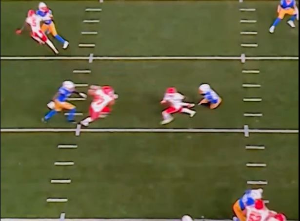 With Worthy at more of an angle it was the receiver who bore the brunt of the hit, flying up into the air after Kelce collided with Worthy’s shoulder.