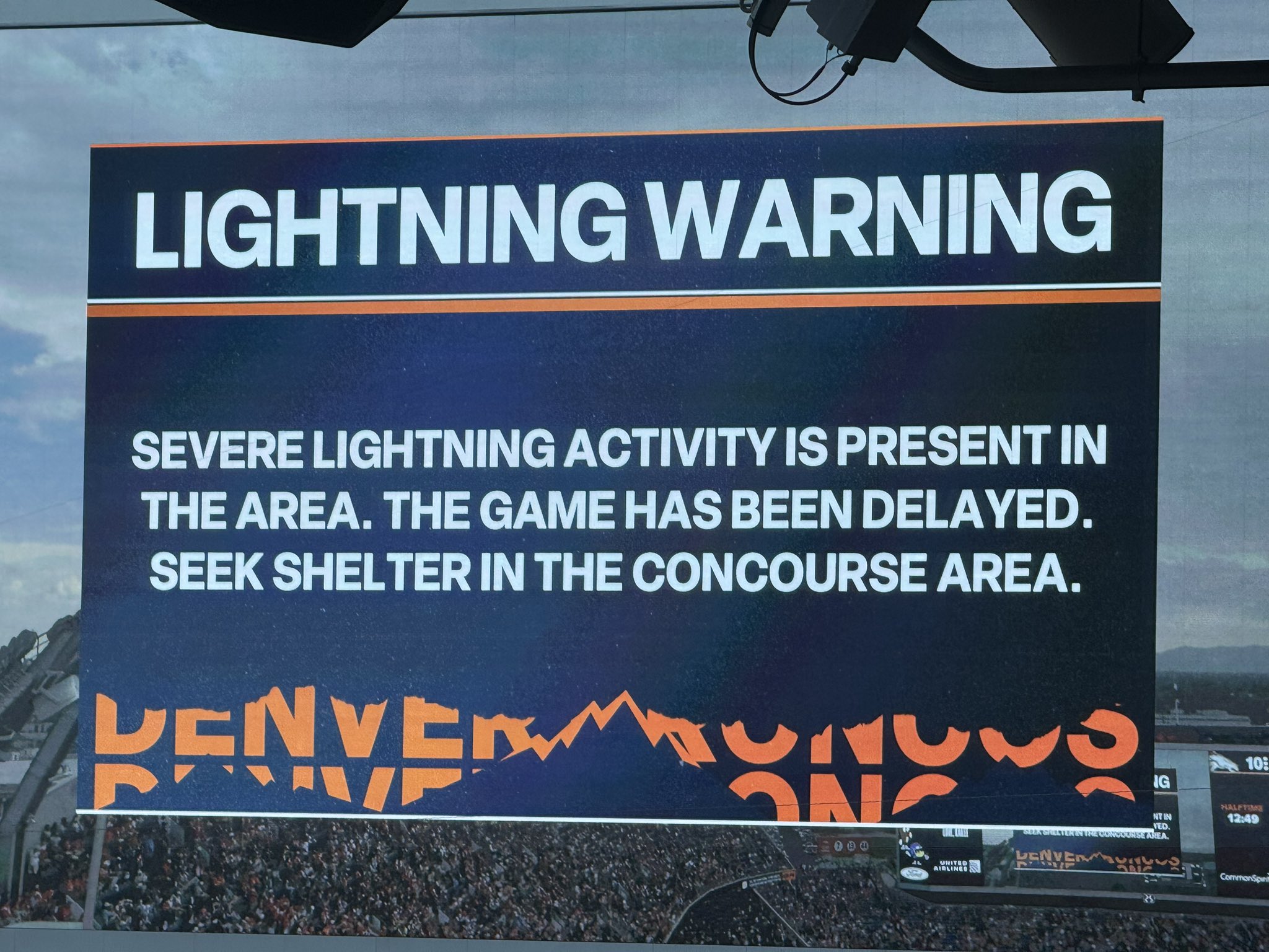 And later in the Sunday window, the Denver Broncos game against the Tennessee Titans was also suspended due to the threat of weather.