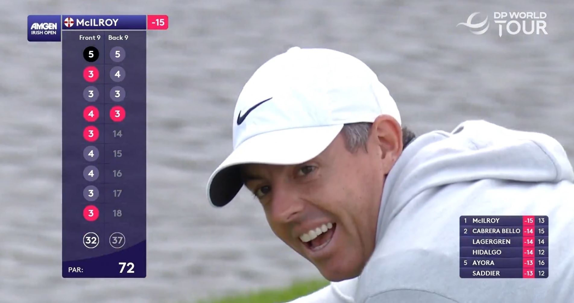 McIlroy’s remarkable putt took his score for the overall tournament to -15.