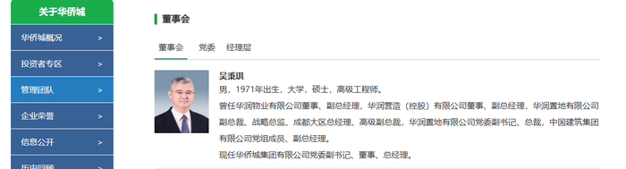 9月5日,国务院国资委官网披露了多家央企的领导人员职务任免信息,其中也包含华侨城的人事变动。公告显示,曾担任过华润置地总裁、中国建筑副总经理的吴秉琪,将出任华侨城集团有限公司党委副书记、董事,并提名为总经理人选。
