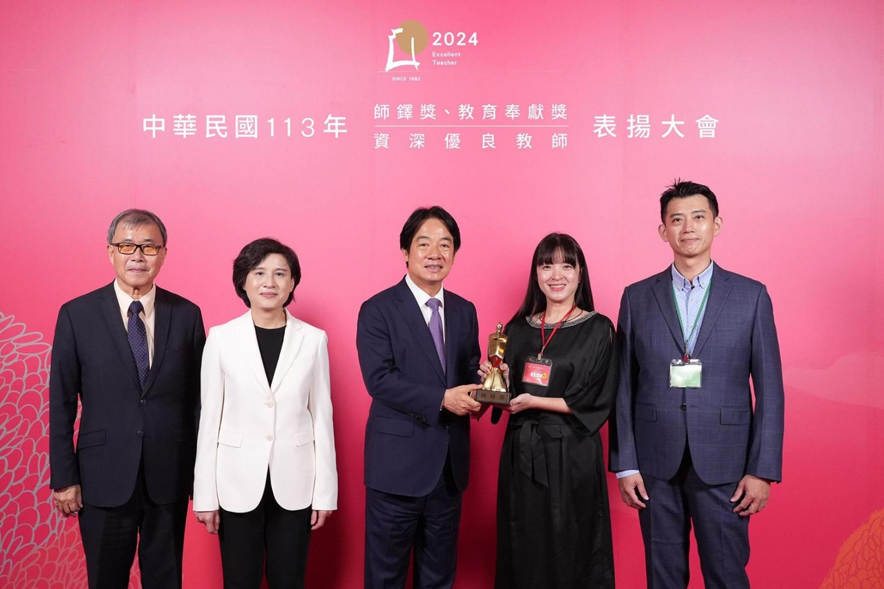 葉怡君教師(右二)榮獲民國113年師鐸獎。(圖片來源/教育部)