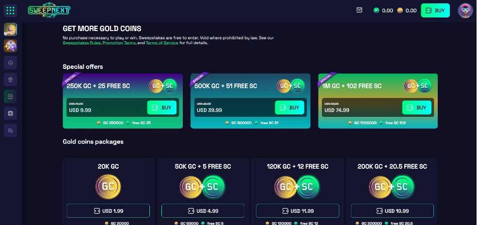 Players can earn Gold Coins and Sweeps Coins at SweepNext through: