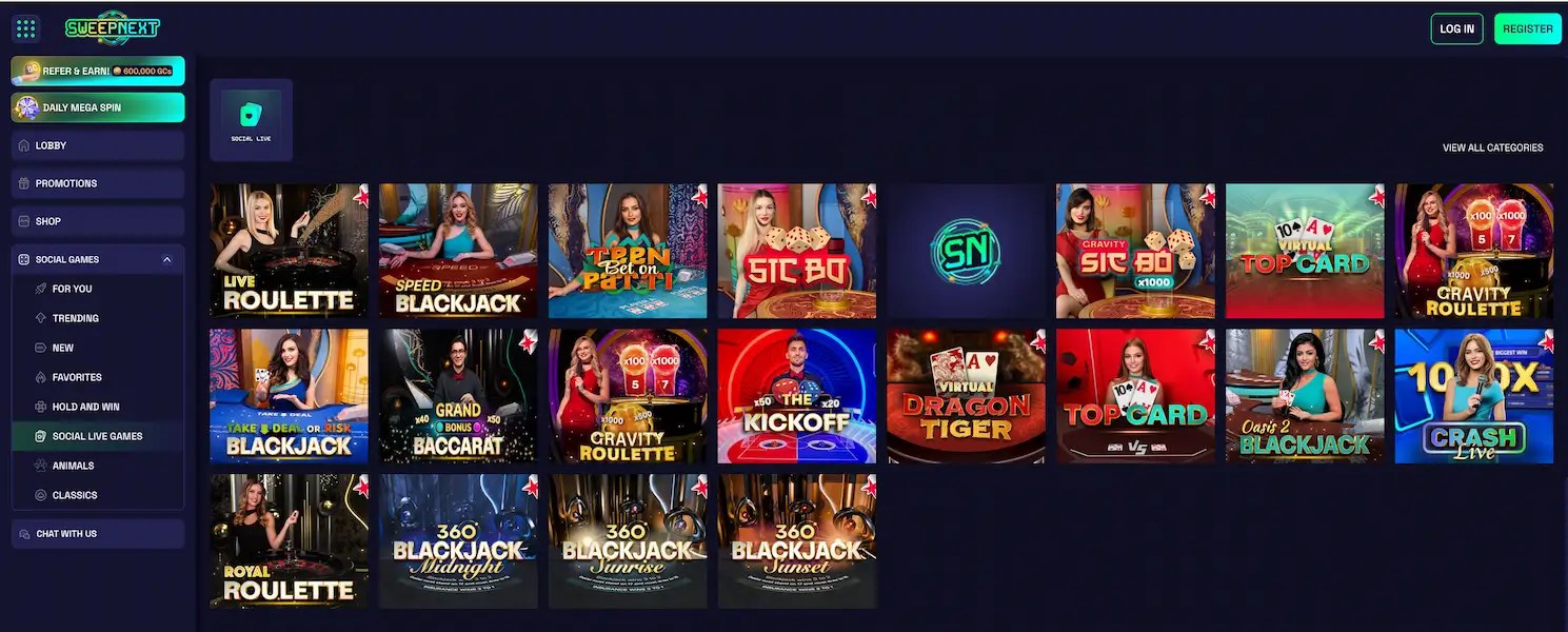 For a social casino using a sweepstakes model, having a live casino is a significant advantage that few competitors offer.