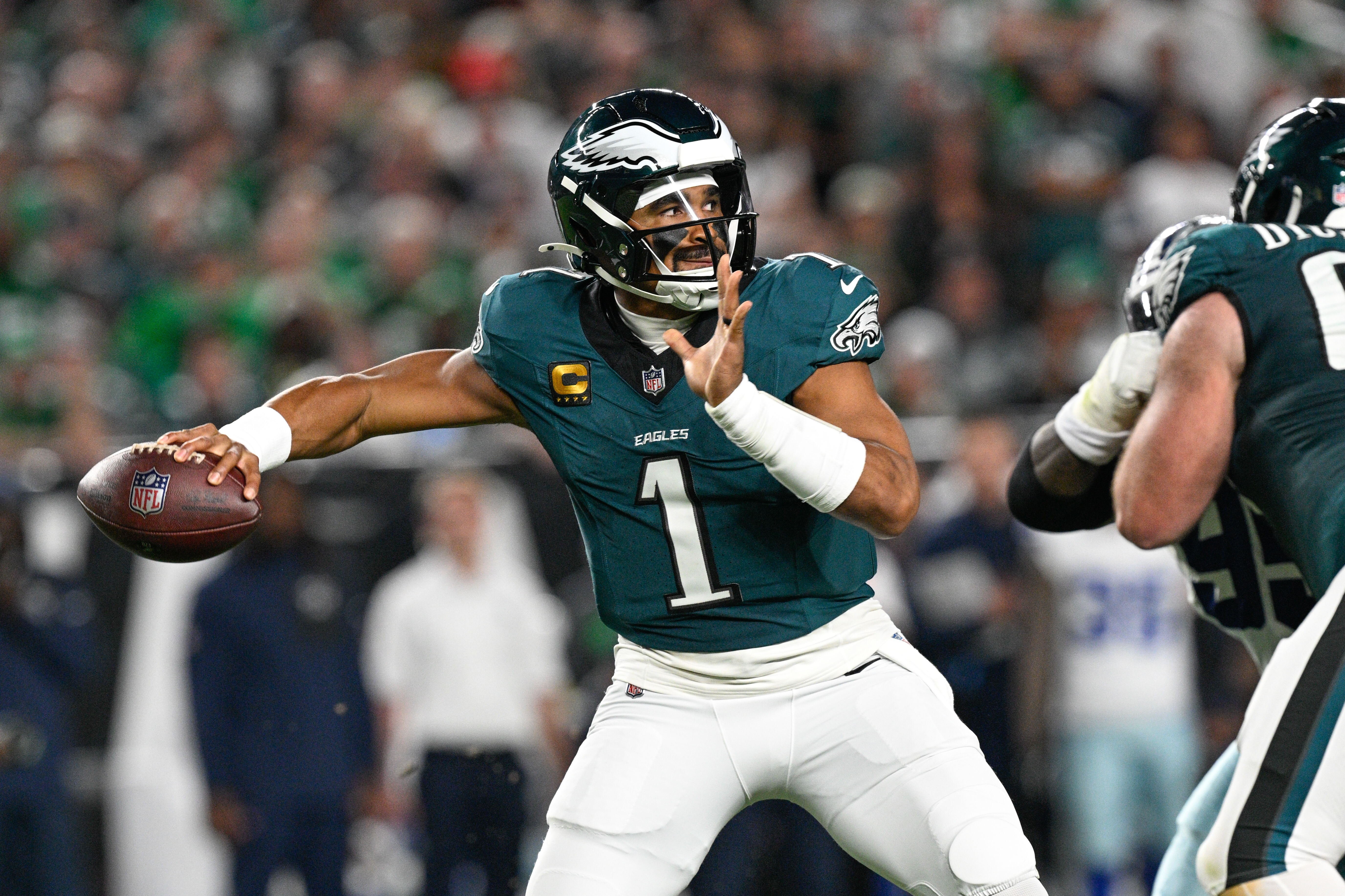 Against the Cowboys, Hurts completed 19 of 23 passes for 152 yards and two touchdowns.
