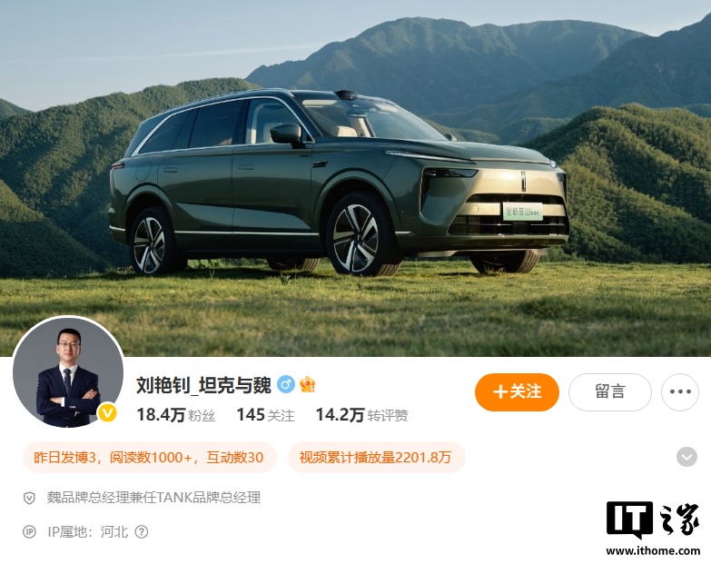 IT之家 7 月 11 日消息,据雷峰网《新智驾》今日爆料,刘艳钊已升任长城汽车副总裁,主管公司传播中台,为长城汽车公关体系一号位,不再担任魏牌 & 坦克品牌 CEO。
