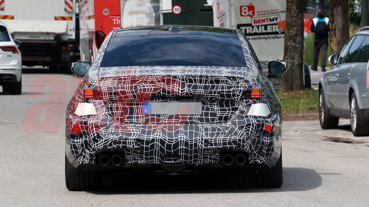 At the back of the M5 LCI, the new taillight clusters are still placeholder units that won't be offered to customers, but their shape indicates that they won't deviate much from the current design. Future M cars are expected to have unique headlight graphics (and possibly colors), so we expect something similar at the rear. Then again, a quad-exit exhaust with a massive diffuser panel may be enough.