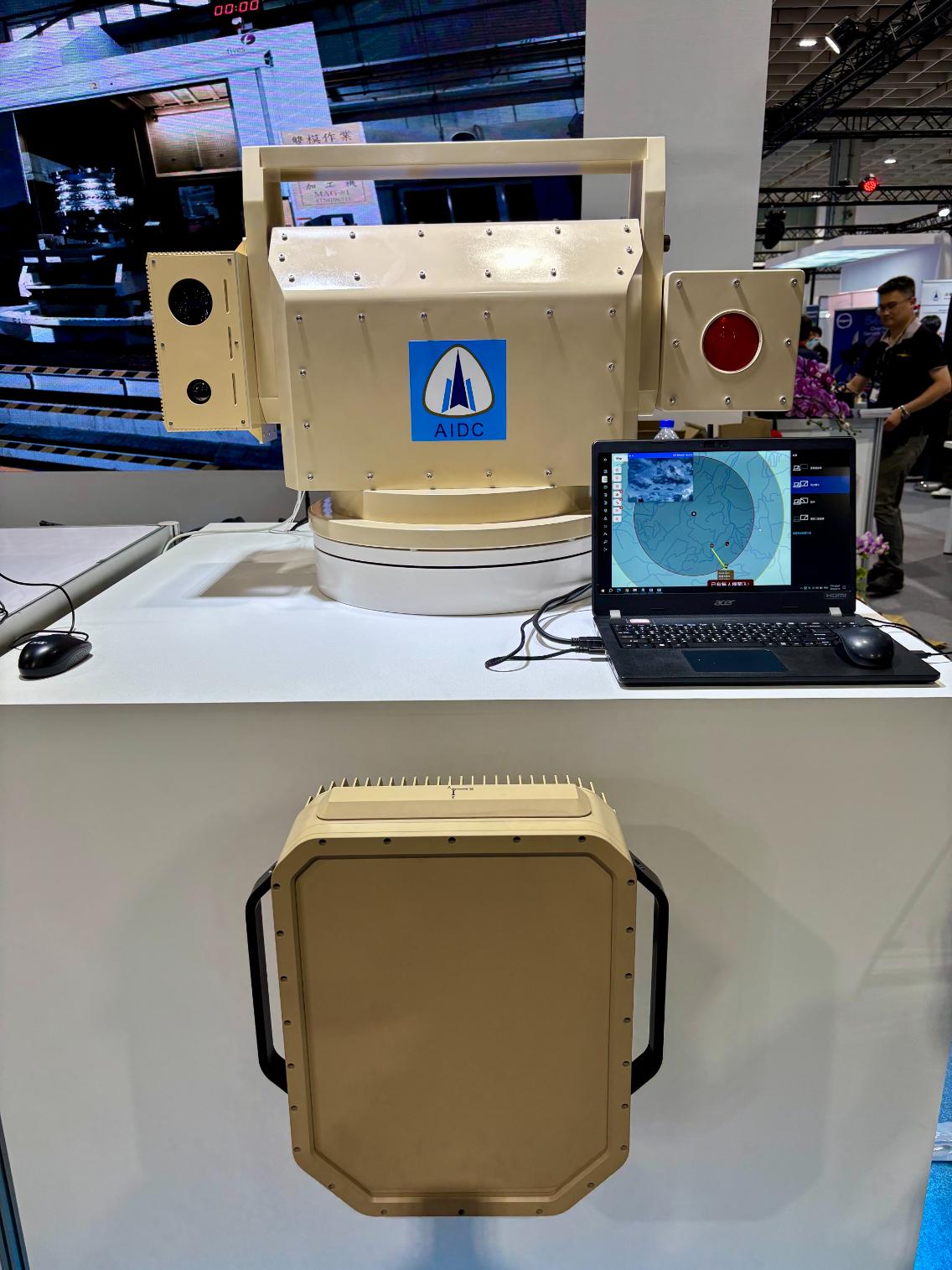 漢翔首度展示雷射反無人機系統,萬瓦雷射晶片進入世界前三名。攝影/蕭介雲)首先在「偵測」與「識別」能力,結合主動、被動雷達,偵測範圍達5公里、360度全方位偵測,對於進入防禦半徑的無人機,能快速辨識機種、高度與速度,並溯源回追入侵操控手所在位置;「目獲」則是透過EO/IR(光學與紅外線偵測模組)取得目標影像。