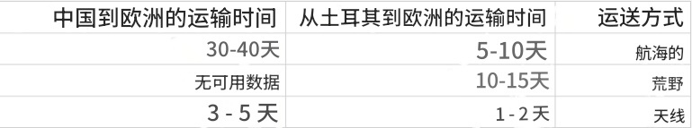 土耳其的地理优势和先进的基础设施使其在运输时间和成本方面比中国更具优势。