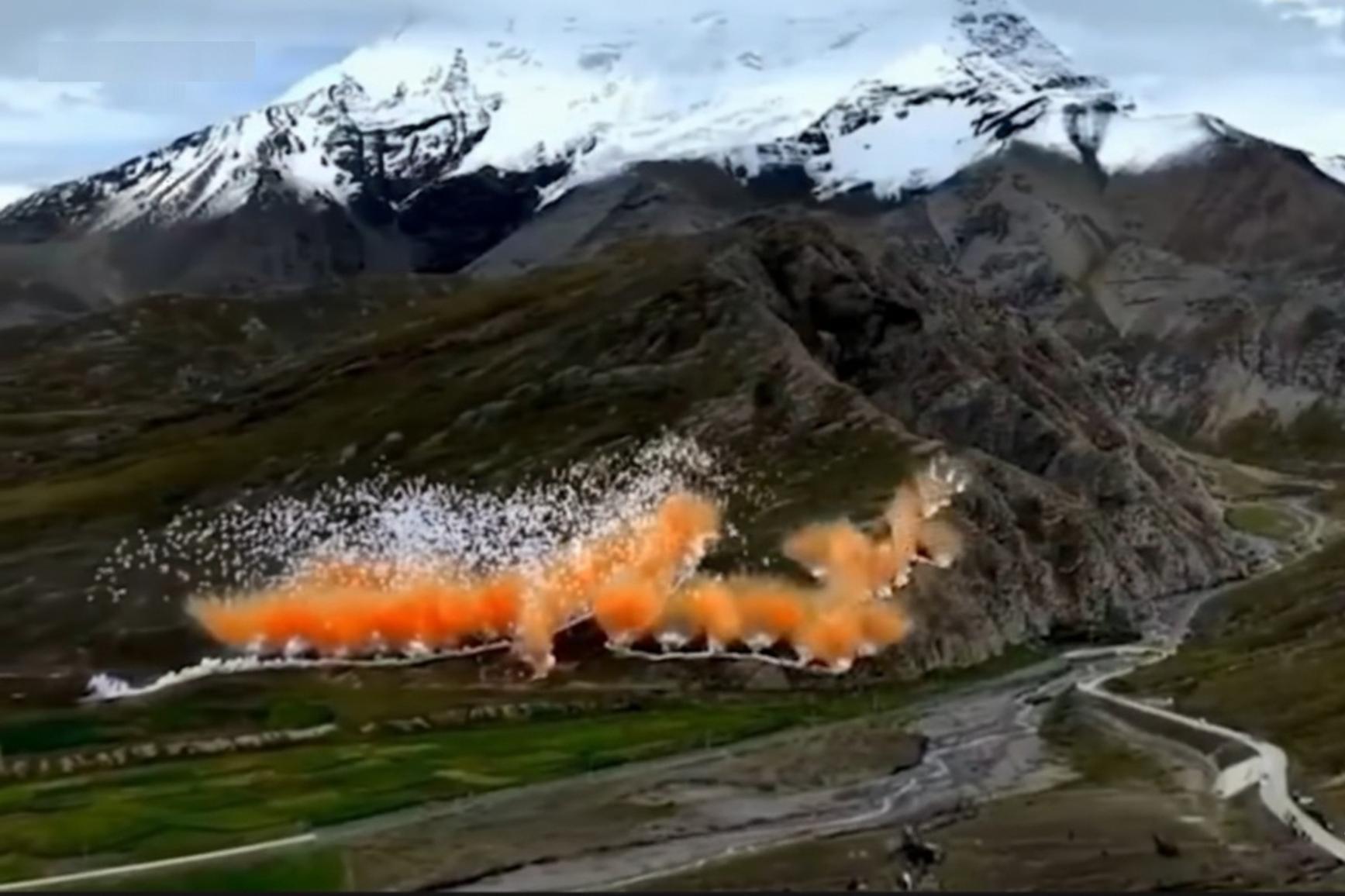 爆破藝術家蔡國強和戶外品牌始祖鳥在西藏山上爆炸藝術引發眾怒,連中國《新華社》都加入抨擊。(圖片來源/翻攝自中國媒體)
