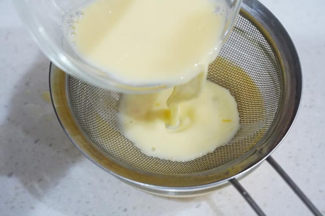 如果你希望蒸蛋成品的質地更加細膩滑順,會建議可以取一個濾網,將混合的蛋汁過篩,將無法打均勻的部分篩掉。但此步驟並非必要。
