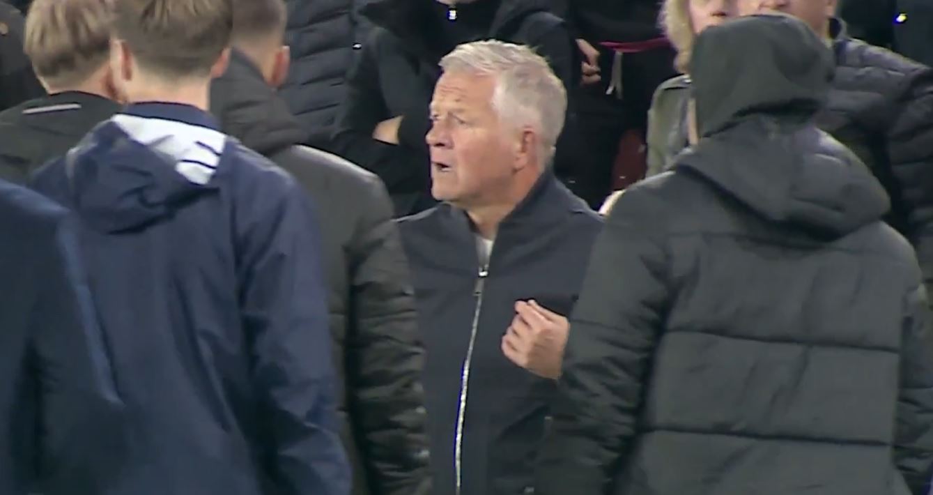 The incident occurred right on half time during the Blades’ 2-1 defeat to Southampton as Wilder was about to head down the tunnel at Bramall Lane.