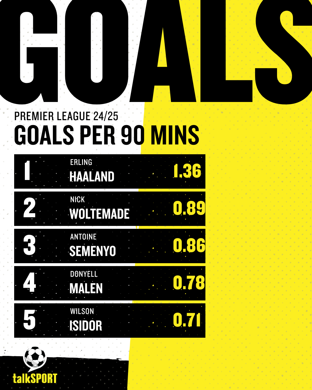 Following the 2-0 win over Nottingham, Woltemade now sits second in the league for the most goals per 90 mins with 0.89, a figure bettered only by Erling Haaland.